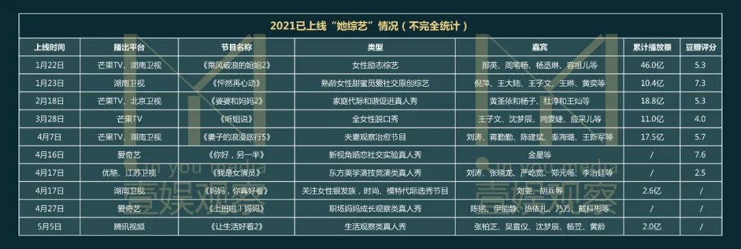 不可否认,“她综艺”是过去五个月综艺市场的“主力”之一。
